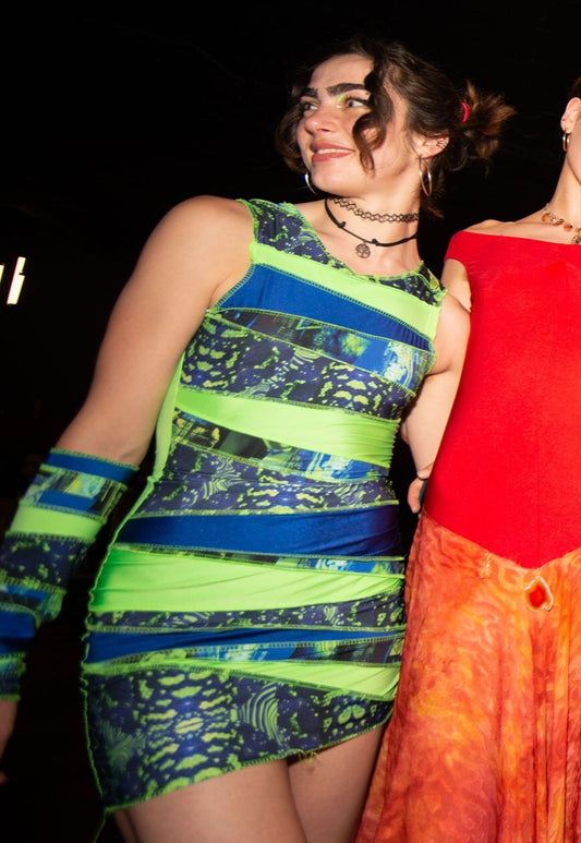 'Dystopia' x 'Ophidian' patchwork dress - READY TO SHIP