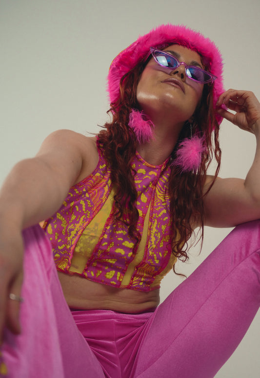 Ophidian Patchwork Top in Pink and Yellow - READY TO SHIP